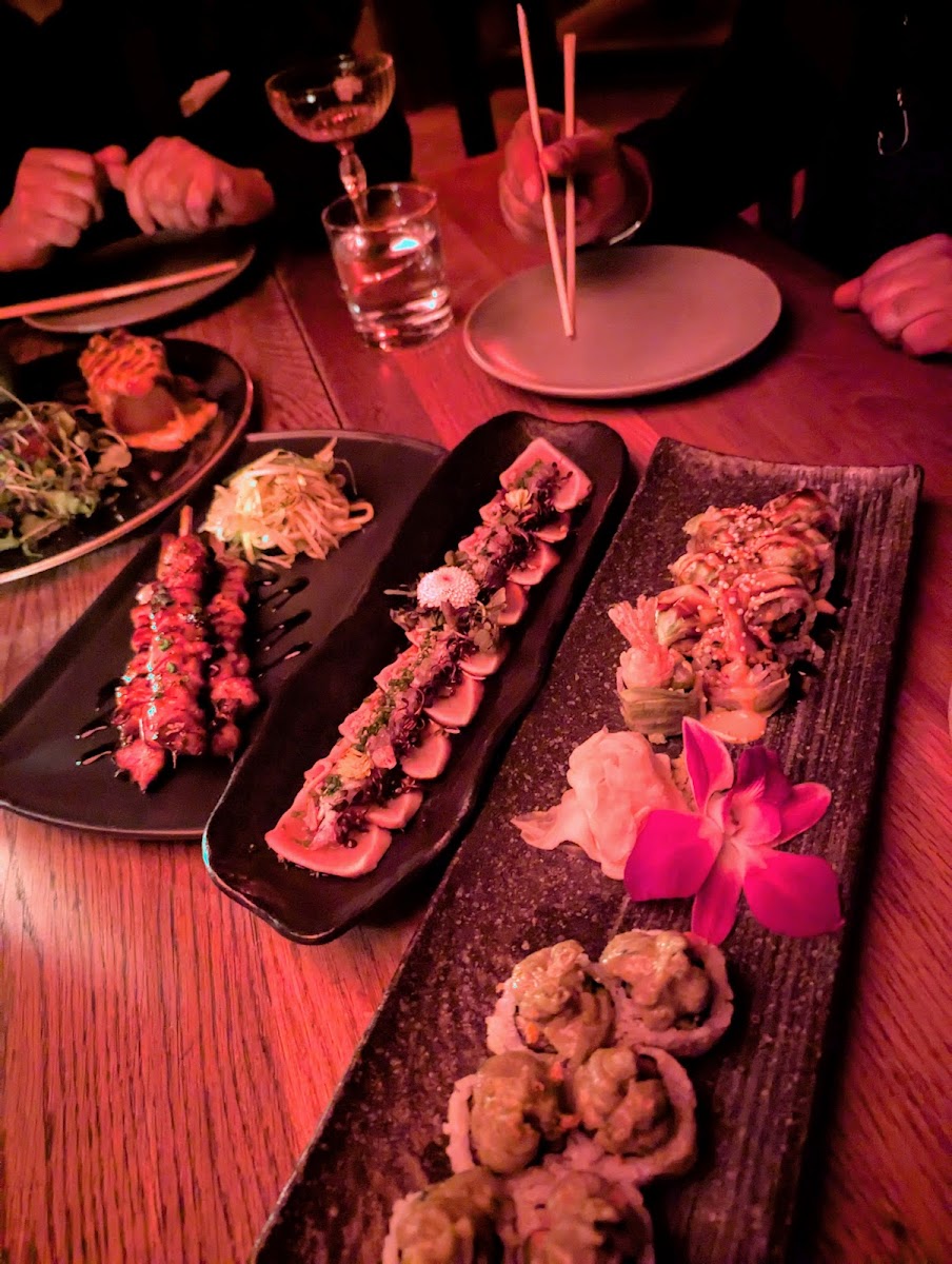 This place is super fun! Came on a Thursday and sat at the bar with Juan. I wish I got to try everything on the menu but what we had was delicious, including our espresso martinis. Then we finished the night with a bottle of sake dancing the night away to house music. I would love to come back and do it again.